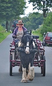 Es wird mit unterschiedlichen Gespannen 1- und 2-spännig gefahren: Shetlandponys, Tinker, Schweres Warmblut. So ist für jeden etwas dabei.